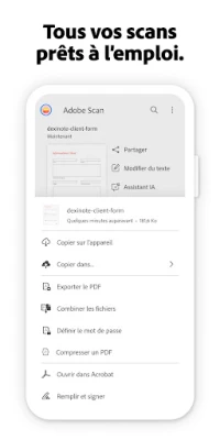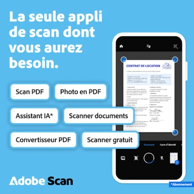 Avec Adobe Scan : scanner PDF, OCR, votre appareil mobile capture des documents nets et professionnels. Redressez vos scans, transformez-les en PDF ou JPEG, et gérez-les facilement. Cet outil innovant inclut un assistant IA pour interroger et exploiter vos contenus numérisés.