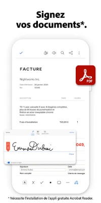 Organisez votre univers numérique comme jamais auparavant. Adobe Scan vous permet de structurer vos fichiers en dossiers personnalisés, qu'il s'agisse de documents professionnels, d'archives personnelles ou de formulaires scolaires. Extrayez les coordonnées de vos cartes de visite en un clin d'œil pour les ajouter directement à vos contacts. Chaque numérisation est automatiquement synchronisée avec Adobe Document Cloud, assurant un accès sécurisé et un partage sans effort sur tous vos appareils. Pour une interaction approfondie, vos scans s'ouvrent harmonieusement dans Acrobat Reader, où vous pouvez annoter, surligner et signer. Avec la confiance de millions d'utilisateurs à travers le monde, Adobe Scan est votre partenaire incontournable pour une productivité optimisée, avec des options d'abonnement pour fusionner des documents et étendre les capacités de reconnaissance textuelle sur un plus grand nombre de pages.