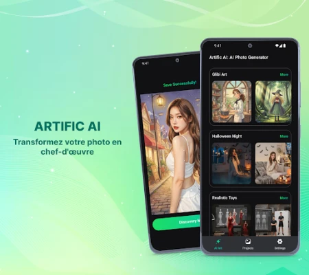 Imaginez donner une nouvelle vie à vos photos préférées, les transformant en œuvres d'art saisissantes grâce à une touche d'intelligence artificielle. Artific AI est votre studio créatif mobile, un générateur d'image IA révolutionnaire qui déverrouille un univers d'expressions artistiques. Oubliez les outils complexes : en quelques instants, vos clichés ordinaires se métamorphosent en créations uniques, imprégnées de styles captivants, le tout grâce à la puissance intuitive de Artific AI.
