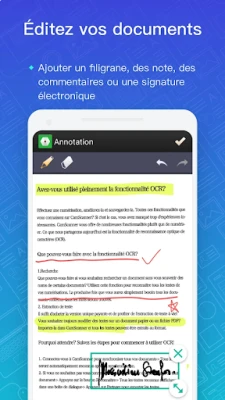 Organisez vos informations essentielles avec une efficacité inégalée. Ajoutez des étiquettes, des annotations, des filigranes personnalisés ou votre signature électronique pour une gestion documentaire simplifiée et sécurisée. La collaboration est facilitée : invitez des collègues à visualiser et à commenter vos scans, ou partagez-les aisément avec vos contacts via e-mail, liens sécurisés ou plateformes sociales telles que Facebook et Twitter. Pour une productivité maximale, CamScanner intègre l'impression sans fil et la possibilité d'envoyer des télécopies vers plus de 30 pays et régions du monde.