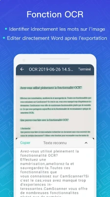 L'intelligence de CamScanner va bien au-delà de la simple numérisation. Bénéficiez de notre fonction OCR avancée qui vous permet de rechercher instantanément des documents numérisés par des mots-clés contenus dans leur texte. Pour les utilisateurs Premium, débloquez la capacité d'extraire, d'éditer, de copier et de partager ce texte en format TXT, avec une prise en charge impressionnante de 41 langues, faisant de CamScanner un allié essentiel pour la gestion de documents multilingues. Votre bibliothèque numérique reste accessible et synchronisée sur tous vos appareils : téléphone, tablette et ordinateur.