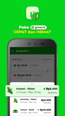 Besoin de vous rendre rapidement à un rendez-vous ? Gojek propose des solutions de mobilité agiles : choisissez GoRide pour une traversée rapide du trafic, ou optez pour le confort et l'intimité de GoCar. Lorsque l'appétit se fait sentir, GoFood déploie une carte infinie de saveurs, permettant de commander vos mets favoris auprès d'une multitude de restaurants et de les faire livrer directement à votre porte. Pour toutes vos expéditions, qu'elles soient personnelles ou professionnelles, GoSend assure un acheminement prompt et sécurisé de vos articles, avec l'assurance que chaque envoi arrivera intact à destination.