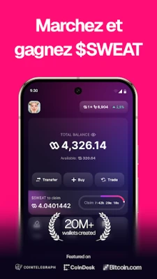 Sweat Wallet transforme votre expérience financière. Rejoignez plus de 20 millions d'utilisateurs pour accéder à la finance multichaîne et découvrir des récompenses uniques. Gérez vos actifs numériques de manière intuitive et sécurisée, une passerelle complète vers l'avenir de la finance.