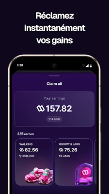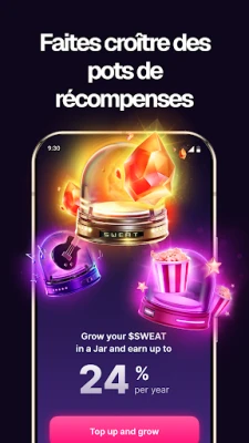 Au cœur de l'expérience Sweat Wallet se trouve la capacité unique de convertir vos pas en $SWEAT, inaugurant ainsi votre parcours dans le monde de la cryptomonnaie. Optimisez vos gains grâce aux "Jars de croissance", des options de placement à haut rendement pour vos $SWEAT, y compris des offres premium. Enrichissez vos connaissances et votre portefeuille avec des modules "Apprenez et gagnez", ou plongez dans le "PlayHub" pour relever des défis ludiques, des quêtes captivantes et des jeux de hasard offrant des récompenses en crypto. L'assistante IA, Mia, vous fournit des analyses personnalisées pour affiner votre stratégie et maximiser vos récompenses.